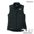 Designed with traditional quilt lines, this insulated vest offers both warmth and weather-resistant performance. Made from 100% polyester ripstop with a 3-ounce polyester blown fill, it features a PU coating on the back of the shell and a durable water-repellent (DWR) finish to help keep you dry. The vest includes a full-length interior storm flap with a chin guard, exposed molded zippers with Eddie Bauer logo pulls, and zippered hand pockets. A slight drop tail hem provides extra coverage, while a decoration access pocket adds versatility. For convenience, the vest packs into its zippered left-hand pocket and is finished with a contrast heat transfer Eddie Bauer logo on the right hem.