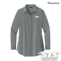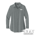 The go-to shirt for her, designed to move with you while keeping the iconic OGIO style front and center. Made from a soft cotton, polyester, and spandex blend, it offers stretch and comfort without compromising a polished look. A covered center-front placket with pearlized buttons adds a refined touch, while seam sleeve panels with top stitching and adjustable cuffs bring tailored detail. Side vents with pearlized buttons, a rounded shirttail hem, and tunic length make it versatile for both professional and casual settings. Finished with the signature OGIO badge at the hem, it’s a smart, stylish choice for the STS team.